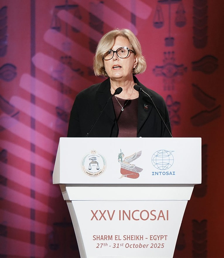 ألقت الدكتورة مارجيت كراكر، رئيسة محكمة المراجعة بجمهورية النمسا الاتحادية، والأمين العام للمنظمة الدولية للأجهزة العليا للرقابة المالية والمحاسبة (الإنتوساي)، كلمة خلال الجلسة الافتتاحية للمؤتمر الخامس والعشرين للمنظمة، المنعقد بمدينة شرم الشيخ تحت رعاية فخامة الرئيس عبد الفتاح السيسي، وتشريف دولة رئيس مجلس الوزراء الدكتور مصطفى مدبولي، وباستضافة الجهاز المركزي للمحاسبات برئاسة المستشار محمد الفيصل يوسف.